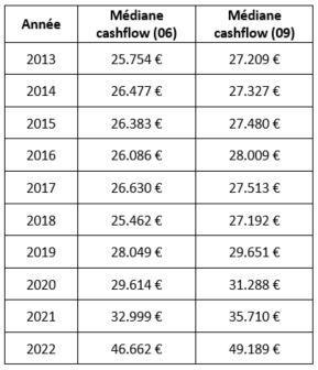 Globalement, le cashflow opérationnel des entreprises est en fait resté stable jusqu’en 2020. Une forte amélioration intervient en 2021 et se poursuit en 2022. En chiffres absolus, cette population n’a donc que peu souffert des crises internationales qui se sont succédées depuis 2020. En termes réels, c’est une autre histoire.