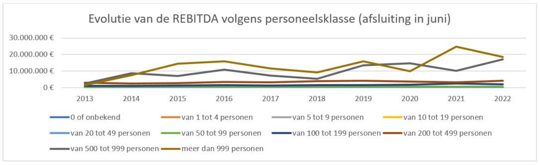 De categorie tussen 200 en 499 personen daarentegen lijkt achter te blijven en zag haar situatie in 2020, 2021 en 2022 verslechteren.